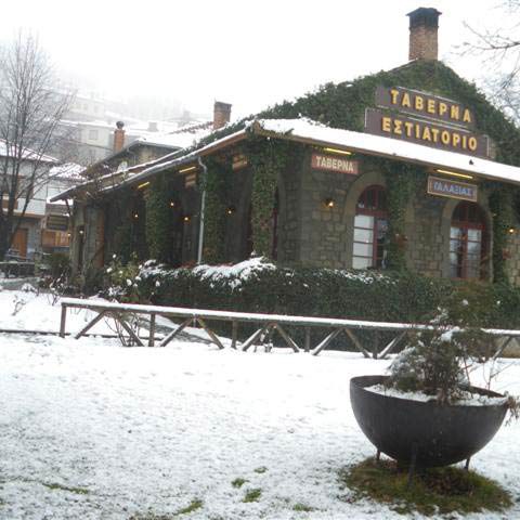 Παράλληλα λειτουργεί το εστιατόριο «Γαλαξίας» το οποίο λόγο της εξαιρετικής τοπικής κουζίνας του, έχει κλέψει τις καρδιές των θαμώνων του αλλά και γενικότερα των επισκεπτών του Μετσόβου. Χειροποίητες πίτες, τραχανάς, κεφτέδες με πράσα, χοιρινή τηγανιά, κυνήγι αλλά και το περίφημο μετσοβίτικο κοντοσούβλι και κοκορέτσι είναι μερικές μόνο από τις νοστιμιές που θα έχετε την ευκαιρία να δοκιμάσετε και οι οποίες σίγουρα θα σας απογειώσουν γευστικά. Επίσης από την πλούσια κάβα θα έχετε την δυνατότητα να επιλέξετε κρασιά του οινοποιείου του Μετσόβου αλλά και της ευρύτερης περιοχής. Ο κοινόχρηστος χώρος, σας «κρατάει συντροφιά» με την καφετέρια και το ζεστό σαλόνι και εκτός από τα ποτά και καφέ θα έχετε τη δυνατότητα να απολαύσετε εξαιρετικό τσάι του βουνού.
